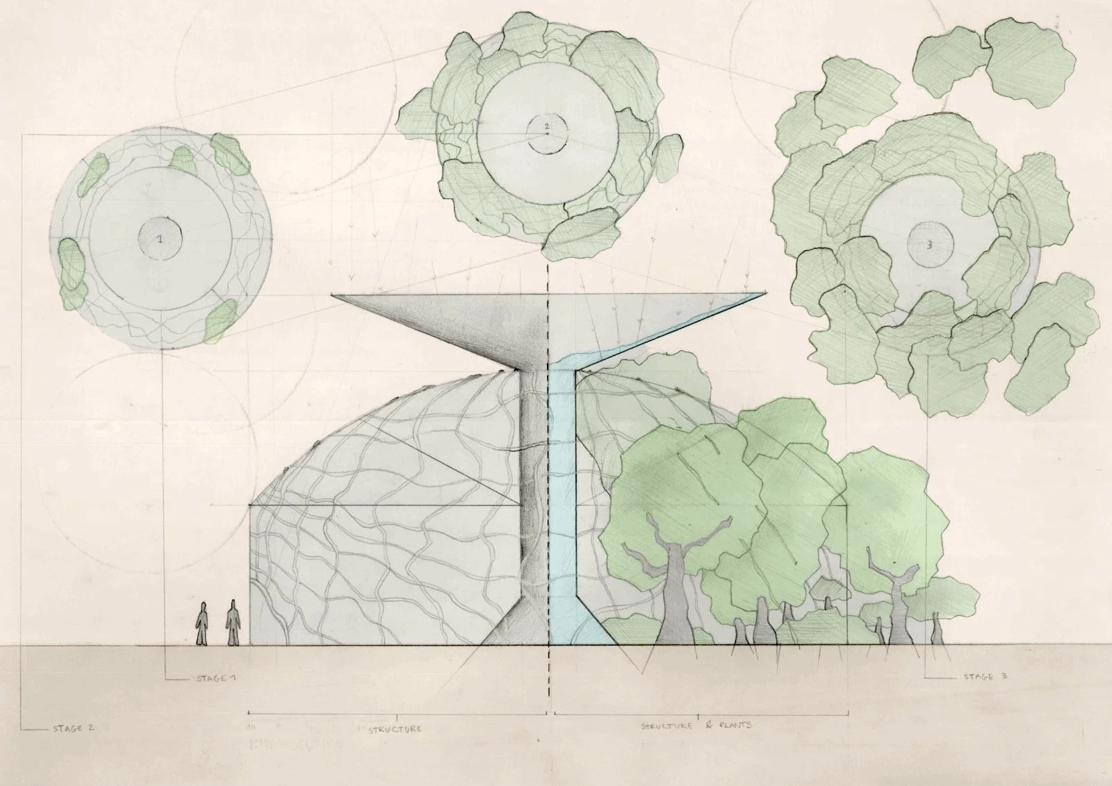 Standing approximately ten metres high, they act as mother trees — recreating the protective conditions of a rainforest canopy in landscapes where it has been lost.